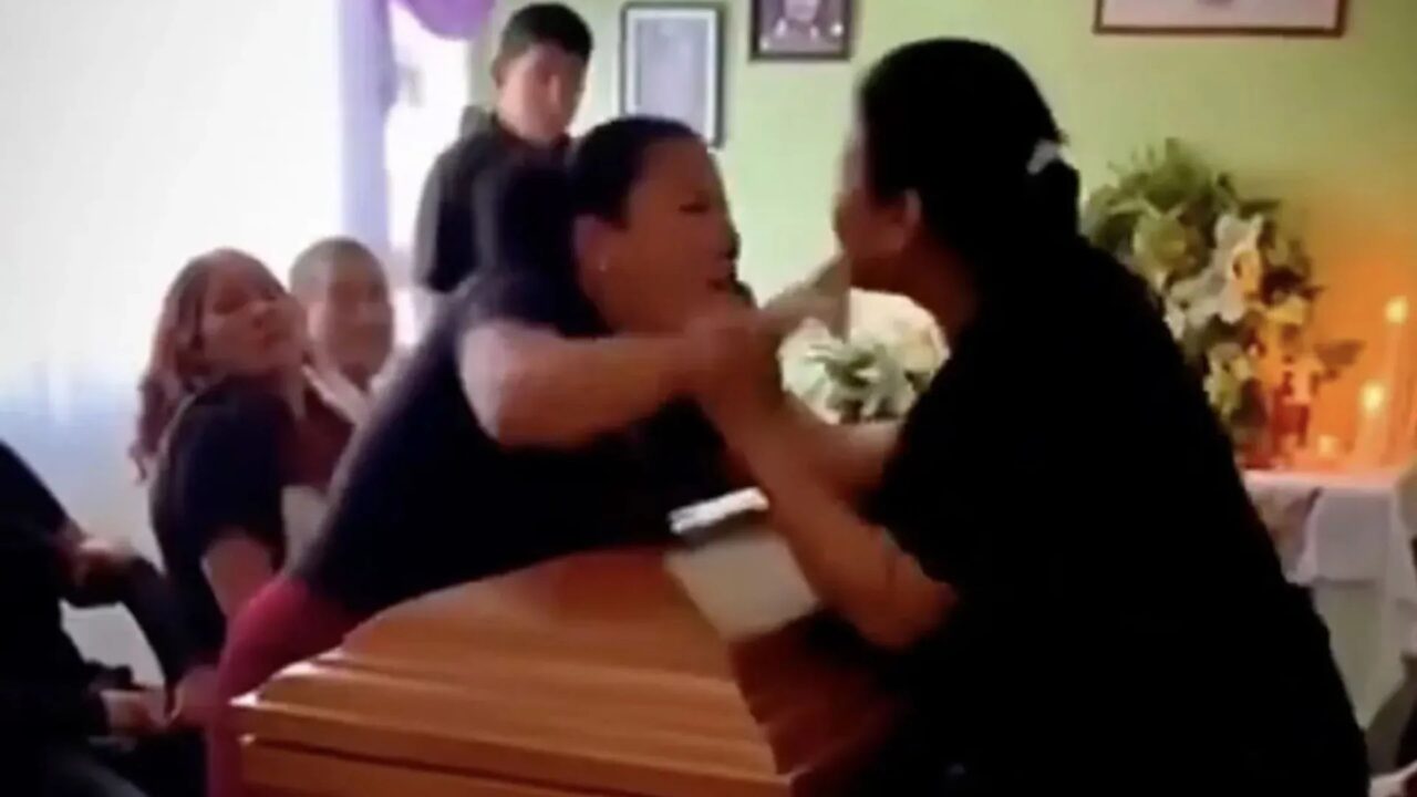 Një sherr i pazakontë ndodhi në Meksikë kur gjatë një funerali, dy gra u konfliktuan mes tyre. Në videon e publikuar nga mediat e huaja, shihet momenti kur nis edhe përplasja, duke sjellë shqetësim te të pranishmit që ishin për ceremoninë e lamtumirës. Konflikti nisi kur një grua u shpreh: ‘Dashuria ime do të më mungosh shumë.’