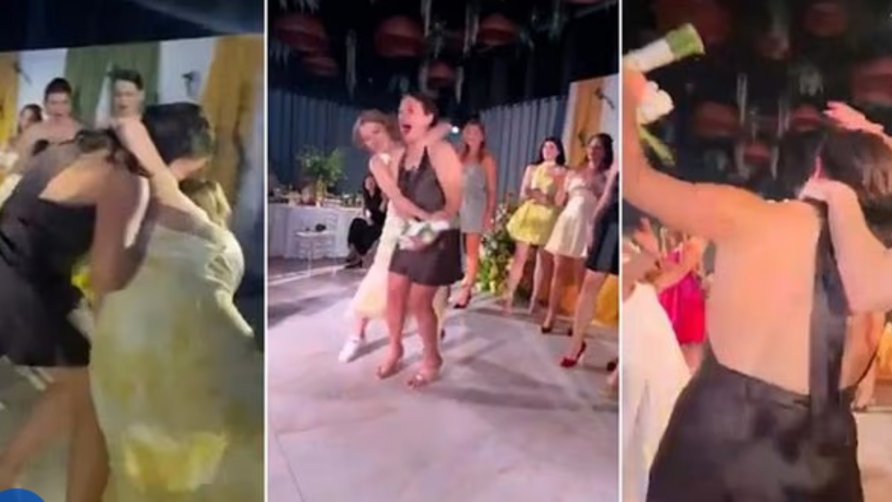 Një moment aspak i këndshëm është regjistruar në një dasmë. Teksa nusja ka hedhur buqetën me lule të saj, të ftuarat kanë nisur që të bëjnë sherr.