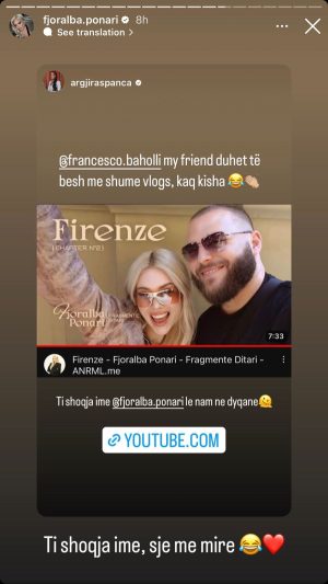 Moderatorja e njohur, Fjoralba Ponari, ka vendosur që udhëtimet e saj t’i dokumentojë. Së fundmi, ajo ka ndarë në kanalin e saj në “Youtube” një vlog nga udhëtimi që bëri në Firence së bashku me partnerin, Françesko.