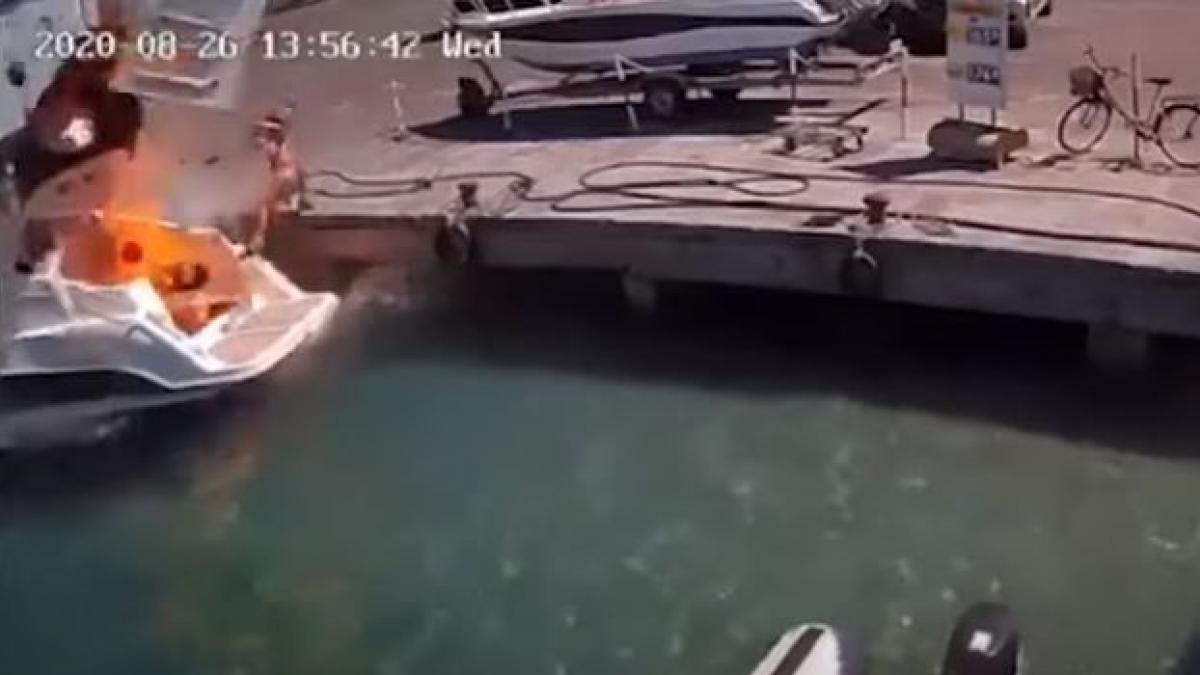 Një grua fluturoi literalisht në ajër kur shpërtheu motori i varkës në të cilën ndodhej.