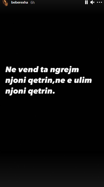 “Në vend ta ngrejë njoni qetrin, ne e ulim njoni qetrin”, ka shkruar Bebe Rexha në shqip.