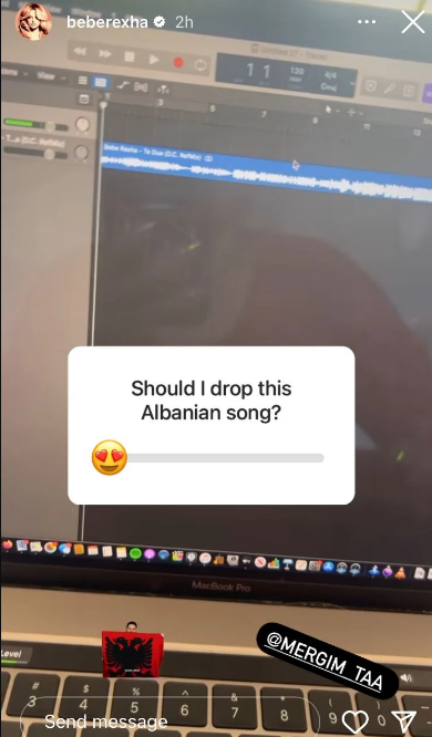 Artistja me famë botërore ka postuar një demo në rrjetin social “Instagram”, teksa këndon shqip. Kënga titullohet “Të dua” dhe Bebe pyet ndjekësit nëse duhet ta publikojë këtë këngë. Videon e shoqëron me flamurin kuq e zi.