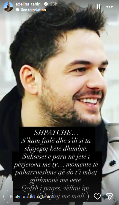 Mes reagimeve ishte edhe ai i këngëtares, Adelina Tahiri, e cila publikoi dedikime të ndjera për artistin e ndjerë. Ajo shkroi se dhimbjen për Shpatin do ta mbajë gjithmonë në zemër, duke e kujtuar me mall dhe respekt.