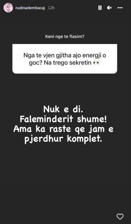 E kështu ka bërë edhe mbrëmjen e djeshme, ku Rudina ka kthyer përgjigje shumë të sinqerta për fansat e saj.