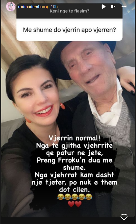 Rudina: Vjehrrin normal! Nga të gjitha vjehrrit që kam patur në jetë, Preng Frroku’n dua më shumë. Nga vjehrrat kam dasht një tjetër, po nuk e them do cilën.