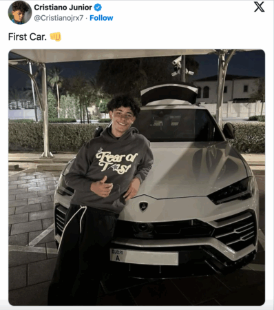 Mesazhi që shoqëroi postimin ishte lakonik: “Makina e parë”. Ndryshe nga babai i tij, i cili bleu një Audi S3 si makinën e tij të parë kur luante për Manchester United, Cristiano Junior po fillon me një model që sigurisht nuk kalon pa u vënë re.