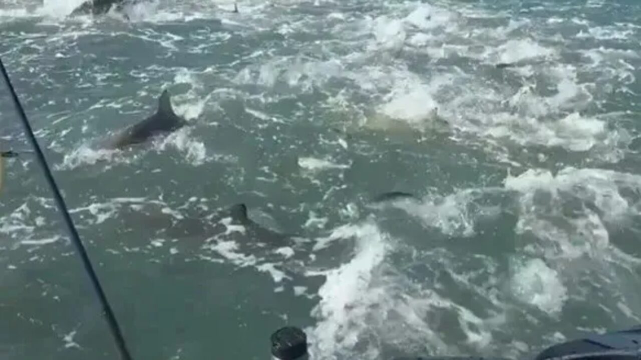 Një përjetim i rrallë dhe i frikshëm është regjistruar në brigjet e Karolinës së Veriut, ku qindra peshkaqenë rrethuan një surfist gjatë një udhëtimi peshkimi në det të hapur. Pamjet e filmuara tregojnë dhjetëra grabitqarë që hidhen nga uji dhe lëvizin me shpejtësi në të gjitha drejtimet, ndërsa ndjekin një tufë peshqish. Në mes të këtij kaosi, surfisti ndodhej mbi jet ski-n e tij, i rrethuar nga një frenezí e vërtetë ushqimi.