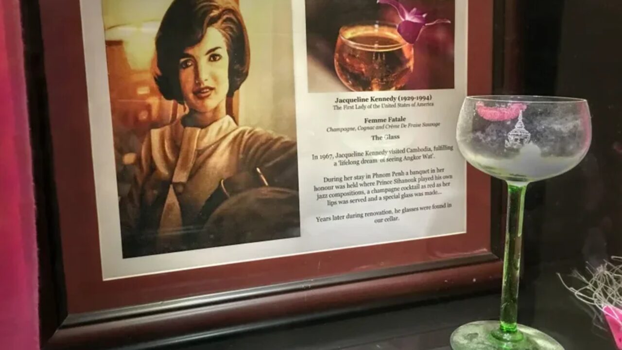 Në vitin 1967, katër vite pas vrasjes së Presidentit John F. Kennedy, Jacqueline Kennedy, tashmë një nga gratë më të njohura në botë, udhëtoi drejt Kamboxhias, në një kohë kur rajoni tronditej nga lufta në Vietnam. Në kryeqytetin Phnom Penh, ajo u prit me nderime dhe u vendos në hotelin më luksoz të vendit, Hotel Le Royal, i ndërtuar që prej vitit 1929 dhe inauguruar nga mbreti Sisowath Monivong. Për nder të ish-Zonjës së Parë, barmeni i hotelit krijoi një koktej special që do të mbetej legjendar: “Femme Fatale”. Përzierje e konjakut, shampanjës dhe kremit të luleshtrydheve, e zbukuruar me një lule, ky koktej elegant u bë simbol i finesës dhe misterit që shoqëronte gjithmonë Jacqueline Kennedy.