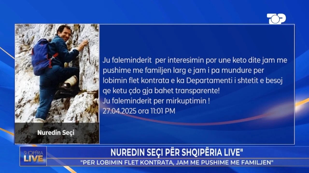 Nuredin Seçi, njeriu garant për pagesën prej 6 milionë dollarë për kompaninë lobuese për heqjen e non gratës së kreut të PD, Sali Berisha ka reaguar në emisionin “Shqipëria Live” në Top Channel.