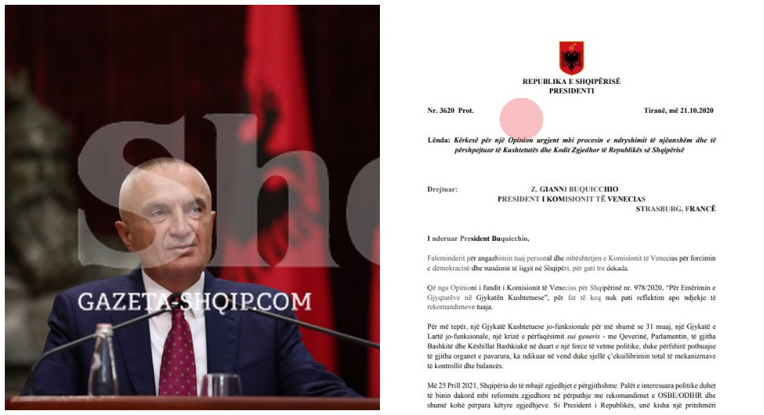 Në fakt, ajo që bën përshtypje në letrën e presidentit Meta nuk përmendet data e 25 prillit që është dekretuar si datë e zgjedhjeve parlamentare të reja, por vetëm viti zgjedhor. A po përgatitet, Meta që nëse vonohet procesi të ç’dekretojë edhe një herë zgjedhjet e të vendosë një datë tjetër? Ja ç’thuhet në letrën drejtuar Venecias: “Duke shprehur konsideratën më të lartë për Komisionin e Venecias dhe ekspertët e tij, për rolin thelbësor që Komisioni i Venecias ka luajtur në hartimin e Kushtetutës Shqiptare të vitit 1998 dhe të modifikimeve të vitit 2016, ju kërkoj me mirësjellje Z. President Buquicchio të gjeni, sa më shpejt të jetë e mundur, mënyrat e përshtatshme për të dhënë një opinion i cili mund t’u përgjigjet pyetjeve të mësipërme dhe të ofrojë shanset që zgjedhjet e përgjithshme 2021 në Shqipëri të organizohen në një klimë kushtetutshmërie, legjitimiteti dhe me pjesëmarrjeje demokratike”