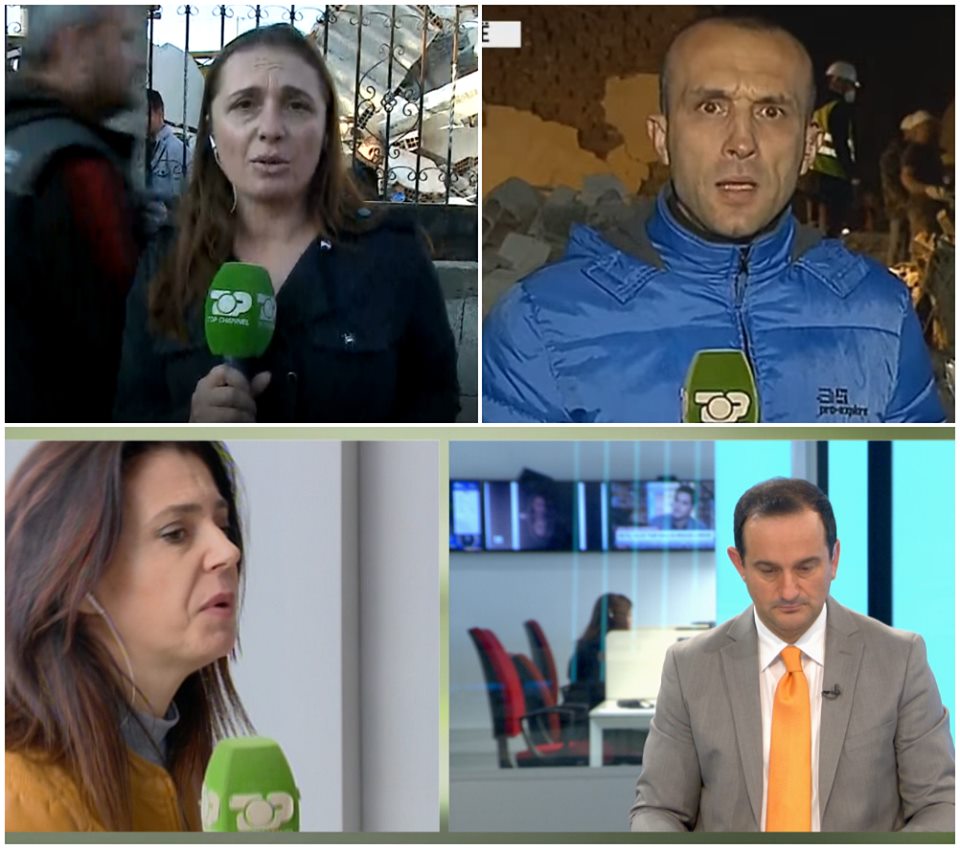 Muhamet Veliu, Ilir Paço, Alma Demiraj dhe Anila Hoxha janë përlotur teksa raportonin nga zonat e prekura të tërmetit, e kur u duhej të raportonin për Top Channel e Top News me pamje nga vendngjarje, mes njerëzve që kërkonin të afërmit e tyre.