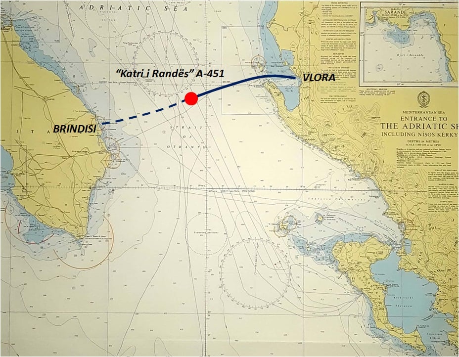 “Katri i Radës” u nis nga Porti i Vlorës me 115 vetë në mbasditen e datës 28 mars 1997 me destinacion Brindizin Italinë, duke lundruar nëpërmjet Kanalit Jugor të Gjirit të Vlorës. Kapiten i anijes “Katri i Radës” (A-451) ishte Namik Xhaferri. Sapo “Katri i Radës” (A-451) doli nga Kanali Jugor i Gjirit të Vlorës u identifikua nga fregata italiane “ZIFERO” (F 577). Kapiteni i fregatës “ZIFERO (F-577) i bëri disa thirrje “Katrit të Radës” për t’u kthyer mbrapa, por thirrjet ishin të pasuksesshme. Në kuvertën e “Katrit të Radës” dalloheshin rreth 30 vetë.
