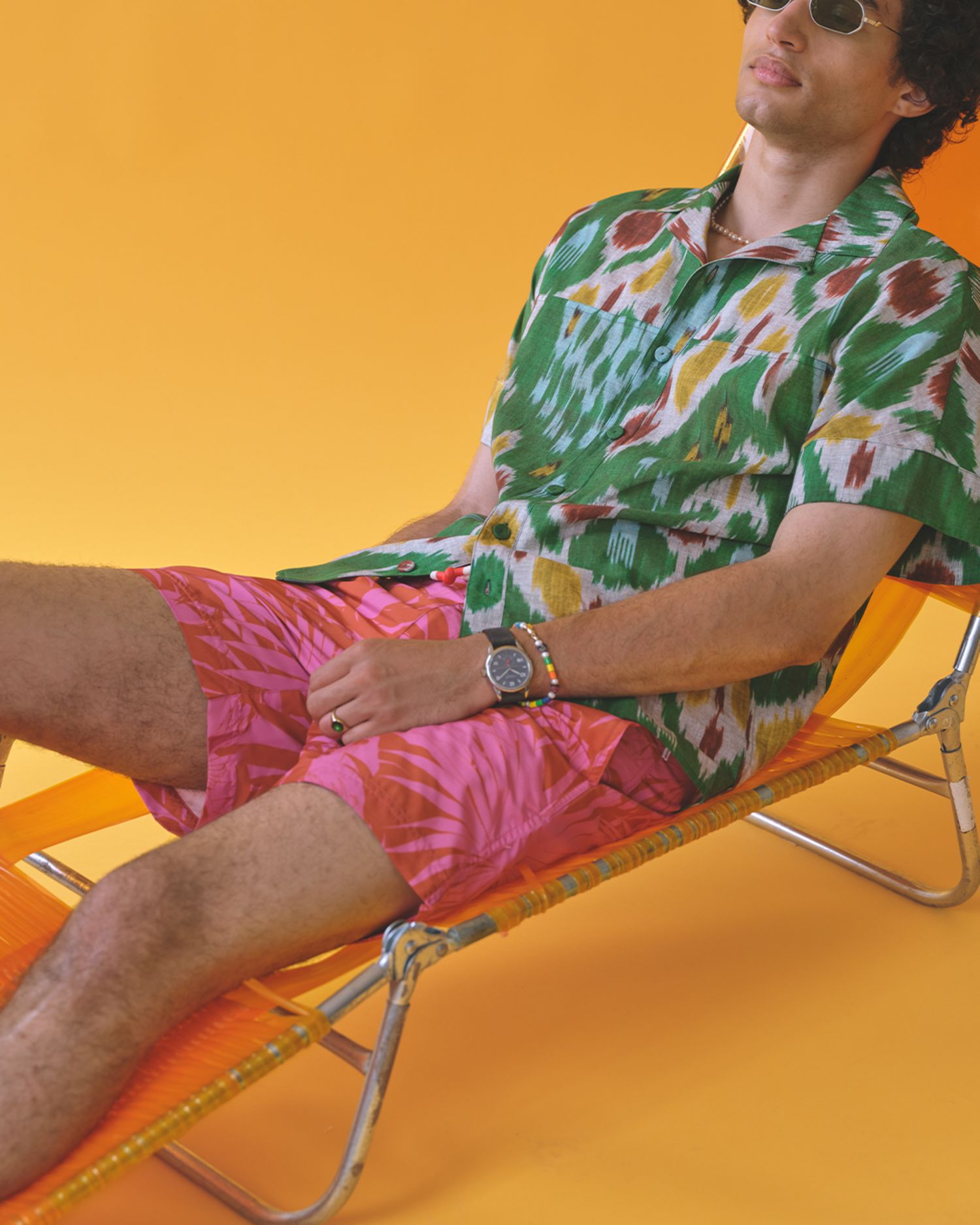 Pantallonat e shkurtra kombinuar me një këmishë autentike të një stili të përjetshëm të markës Ikat, nga adhuruesi i printeve Erdem do të sigurojë që të jeni njeriu më me stil dhe me veshjet më me ngjyra në plazh. Një numër i madh i bizhuterive nuk do të ishte keq, markat éliou dhe Miansai janë të dyja zgjedhje të mira për të sjellë një qasje interesante dhe një pamje verore.