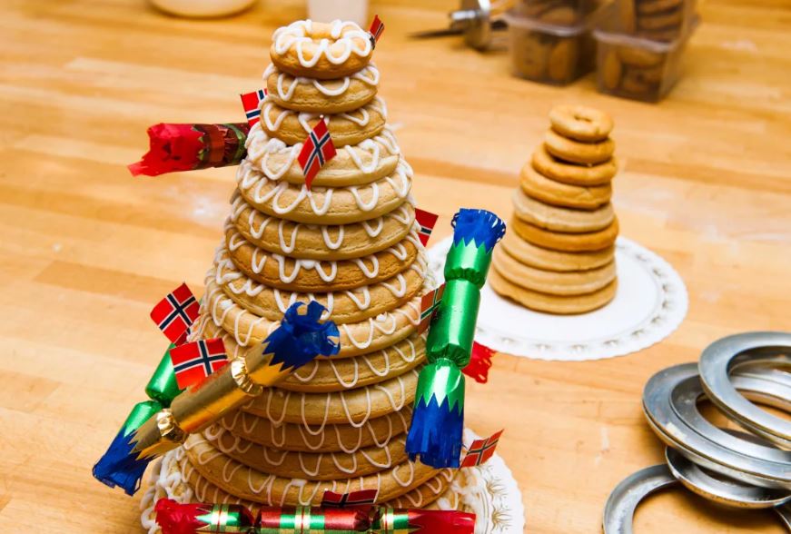 Kransekage është një tortë e përbërë nga disa shtresa të vendosura njëra mbi tjetrën, e cila shërbehet në natën e ndërrimit të viteve. Torta bëhet duke përdorur marzipan dhe zbukurohet me flamuj.