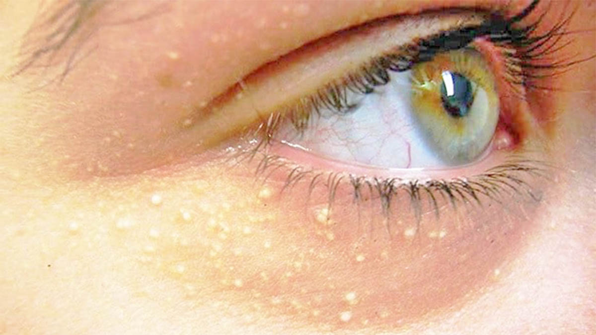 Milia quhen topthat e vegjël që dalin në fytyrë zakonisht rreth zonës së syve.