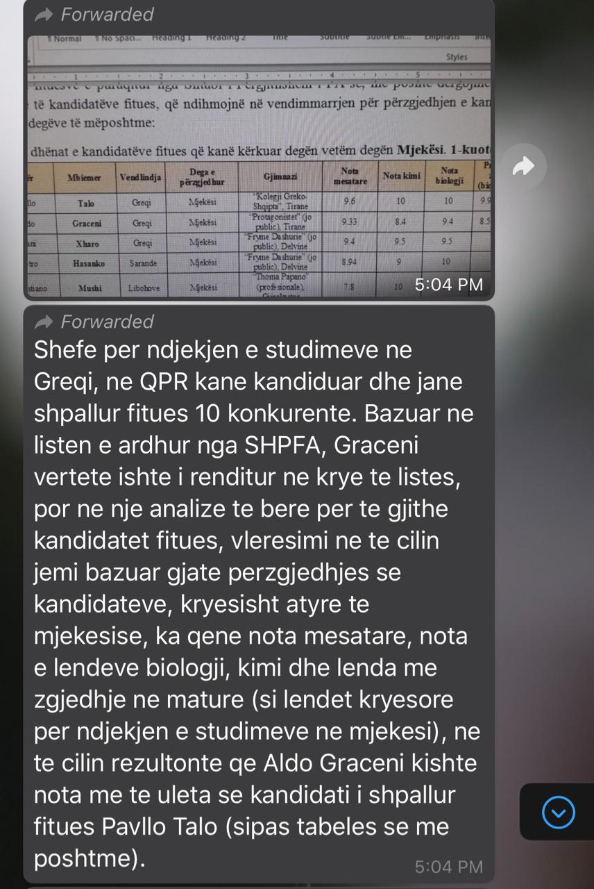Ndërkohë, që është vënë në dijeni edhe Atasheu Ushtarak pranë Ambasadës greke, në Tiranë. Për këtë padrejtësi, familja e kandidatit fitues në degën Mjekësi Ushtarake, Aldo Bledar Graceni, thotë, që ka vënë në dijeni shkresërisht Ministrinë e Mbrojtjes, Qendrën e Personel Rekrutimit, Kryeministrin dhe Avokatin e Popullit.