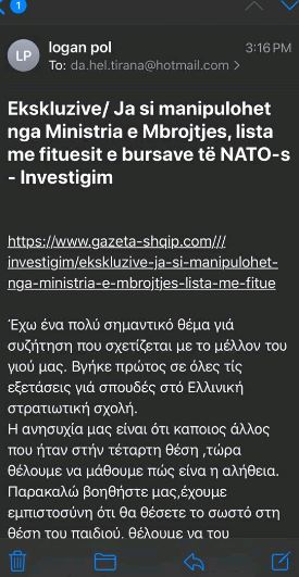 Dy ditë më parë, gazeta “Shqip” bëri publike, skandalin me manipulimin e bërë, nga ana e Ministrisë së Mbrojtjes, të listave, me renditjen e fituesve të bursave të studimit, në Akademitë Ushtarake Greke.