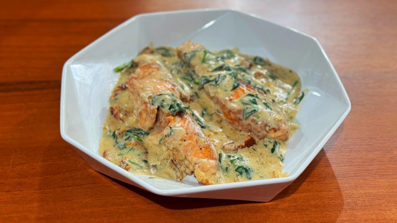 “Salmon me salcë toscane” është receta e zgjedhur nga Linda Fishta në programin “Në Shtëpinë tonë”. Një pjatë e shijshme dhe plot shije që sjell aromën e ushqimit të mesdheut në tryezën tuaj. Kjo pjatë përbëhet nga fileto salmoni, të cilat shoqërohen me një salcë të veçantë. Salca toscane përgatitet duke përdorur përbërës të thjeshtë, por të shijshëm si hudhra, qepa, vera e bardhë dhe domatet e thara, të cilat përthithin aromën e salmonit. Me këtë recetë, mund të shijoni një pjatë që kombinon thjeshtësinë dhe elegancën e kuzhinës toscane.