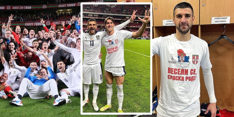 Po ashtu në të gjitha fotot që ata kanë postuar, futbollistët serbë shihen me tre gishtat lart. Gjesti i tre gishtave është një simbol ekskluziv serb, i cili në vitet e fundit ka marrë ngjyrime të forta nacionaliste, pasi u përdor në masë nga forcat paramilitare serbe në luftë, fillimisht kundër myslimanëve.