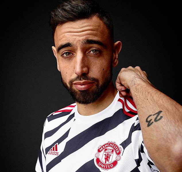 Bruno Fernandes, Marcus Rashford dhe Scott McTominay gjithashtu kanë prezantuar modelin e ri, për të cilin prodhuesi Adidas thotë se është ‘frymëzuar nga fanellat me vija nga historia e klubit’.