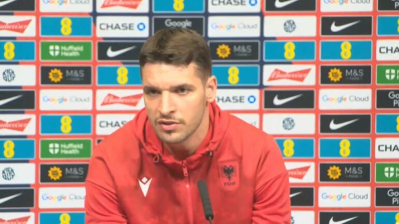Përkrah trajnerit Sylvinho, në konferencë para Anglisë, takim ky i vlefshëm për kualifikueset e Botërorit u shfaq edhe mbrojtësi Berat Gjimshiti.