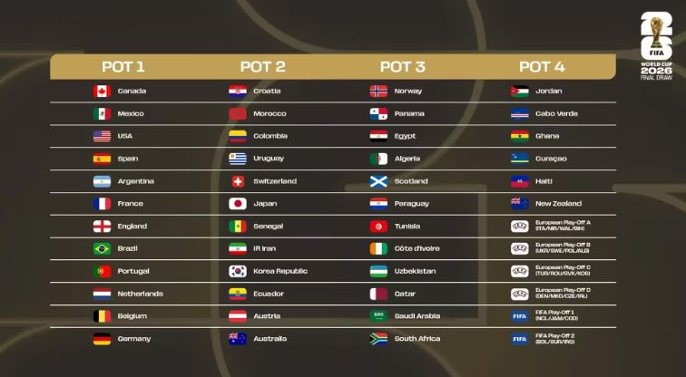 Në vazon e parë do të jenë tre vendet organizatore: SHBA, Meksikë dhe Kanada, ndërsa 9 skuadrat e tjera do të jenë përfaqësueset të renditura më lartë në FIFA: Spanja, Argjentina, Franca, Anglia, Brazili, Portugalia, Holanda, Belgjika dhe Gjermania.
