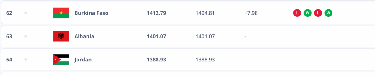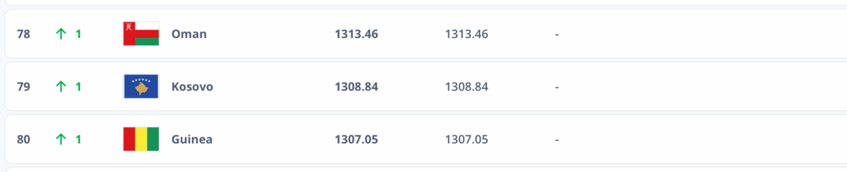 Ajo që ka fituar sërish pozicion që është pikërisht përfaqësuesja e Kosovës. Dardanët e nisin vitin 2026 në vendin e 79, një shkallë më lart në krahasim me klasifikimin e publikuar në fund të vitit 2025 me skuadrën e drejtuar nga Franco Foda që shkon në 1308.84 pikë.