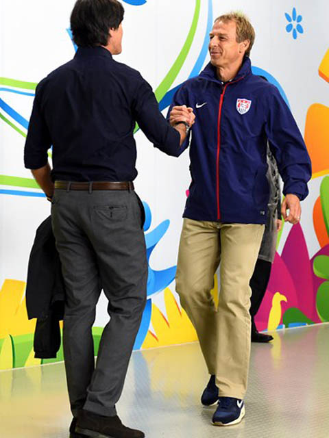 Shirat e rrëmbyeshëm në Recife kishin vënë diskutim zhvillimin e ndeshjes ku viheshin përballë miqtë Klinsman dhe Lëv. Në fund, dy skuadrat kanë zbritur në fushën e lojës, me ndryshime kryesisht në radhët e ekipit gjerman, ku Shvajnshtajger dhe Podolski ktheheshin si titullarë. Ishin pikërisht gjermanët ata që ushtruan më shumë trysni që në minutat e para të sfidës, me mbrojtësit amerikanë dhe portierin Hauard që u detyruan të bënin ndërhyrje vendimtare për të shmangur që Myler apo Ozil të gjenin rrugën e rrjetës. Duke parë se asgjë nuk po ndryshonte në lojën e ekipit të tij, pavarësisht dominimit territorial, Lëv aktivizoi në fillimin e pjesës së dytë edhe Miroslav Klose, i cili është në kërkim të golit që do ta bënte rekordmen absolut të Botërorëve. Falë kësaj lëvizjeje, Gjermania rriti intensitetin e manovrës së saj, duke u shpërblyer me golin e minutës së 55-të, të shënuar nga Tomas Myler, i aftë të dërgonte topin në rrjetë pas një grushtimi të Hauard ndaj gjuajtjes me kokë të Mertesaker. Ky ishte goli i 9 në Botëror për Myler, duke barazuar një legjendë të futbollit si Diego Maradona. Lajmet nga ndeshja tjetër se Gana kishte barazuar rezultatin, bënë që SHBA të alarmohej dhe të kërkonte barazimin, pasi fitorja e afrikanëve i eliminonte nga turneu, për edicionin e tretë radhazi. Ndonëse skuadra e Klinsman nuk arriti të gjente golin e barazimit, pavarësisht tentativave të Bedoja dhe Dempsi, ajo doli duke festuar nga fusha, pasi fitorja në minutat e fundit të Portugalisë i siguroi një vend mes 16 ekipeve më të mira të turneut, që gjithsesi e kishte merituar me paraqitjet e saj.