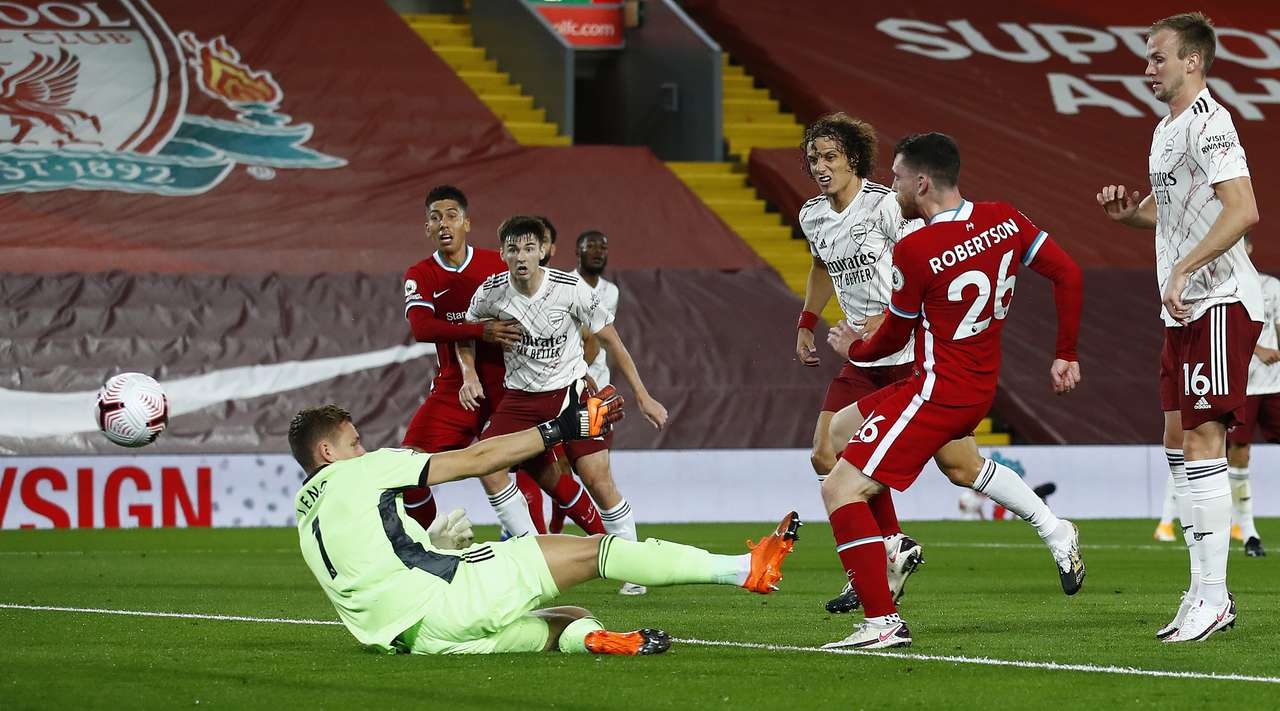 Skuadra Arteta-s kaloi e para në avantazh me një gol të Lacazette në minutën e 26 të takimit, falë një gabimi në mbrojtjen e vendasve. Por ky avantazh zgjati vetëm 3 minuta pasi “Të kuqtë” barazuan me Mane. Goli i avantazhit erdhi po në pjesën e parë nga Robertson në të 34-ën.