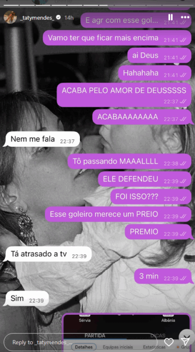 Tati Mendes, vajza e trajnerit Silvinjo, prej kohësh reagon kur luan Kombëtarja. Dhe në ndeshjen historike ndaj Serbisë ka qëndruar po ashtu aktive. Nëse një lojtar do duhej të veçohej mbrëmë, të gjithëve mund t’u shkojë mendja te Manaj si autor i golit vendimtar. Në anën tjetër, Tati ka pikasur portierin Strakosha.