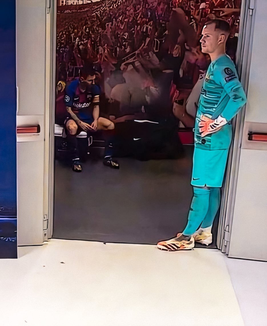 Një imazh që doli nga dhoma e zhveshjes tregon se Messi nuk është në gjendje të pajtohet me atë që ndodhi.