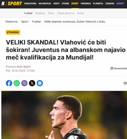 Menjëherë, portali serb e cilësoi këtë gjë si skandal, duke shkruar: “Skandal i madh! Vlahovic do të shokohet! Juventusi njoftoi ndeshjen kualifikuese për Kupën e Botës në gjuhën shqipe!”.