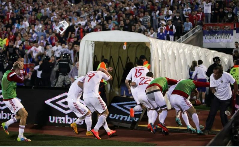 Incidenti famëkeq i Beogradit, kur një dron me flamurin e “Shqipërisë së Madhe” fluturoi mbi fushë dhe shkaktoi përleshje mes lojtarëve e tifozëve, vazhdon të ndjekë edhe sot çdo përballje mes dy kombëtareve. Thirrjet “Vrisni shqiptarët” dhe sulmet ndaj autobusit të ekipit kuqezi atëherë ndezën tensione në gjithë rajonin dhe diasporë.