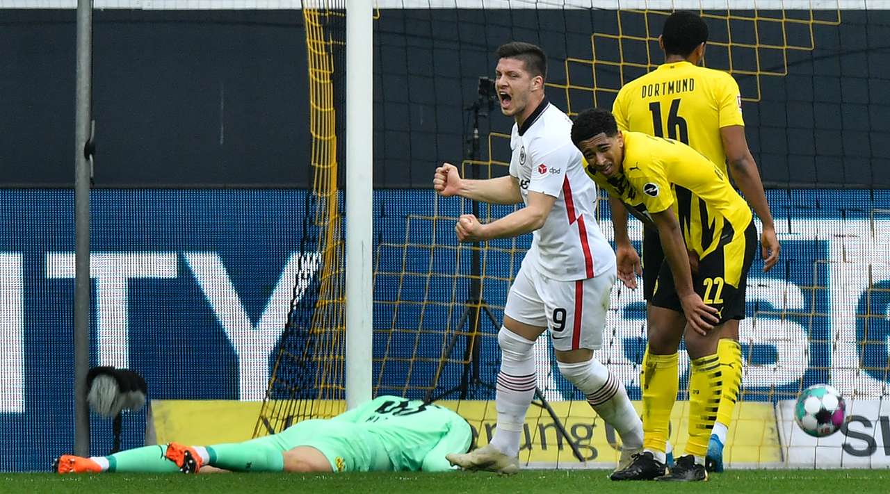 Këta të fundit kaluan në avantazh në minutën e 11’, pas një autogoli të Schulz, ndërsa verdhezinjtë ia dolën të shkojnë në dhomat e zhveshjes me rezultatin e barabartë 1-1, pasi ishte mbrojtësi Hummels që shënoi. Në momentin më të mirë të Borussias së Dortmundit, ishte sulmuesi portugez Andre Silva që shënoi edhe golin e dytë për miqtë nga Frankfurti, duke u dhënë një fitore mjaft të rëndësishme, që i konsolidon në zonën Champions të renditjes.