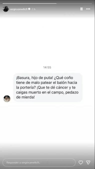 Sulmuesi i Rayo Vallercanos, Sergio Camejo, ka vendosur të ndajë me më shumë se 68,000 ndjekësit e tij në Instagram një mesazh tronditës urrejtjeje që mori në rrjetet sociale pas barazimit 0-0 të ekipit të tij me Oviedon.