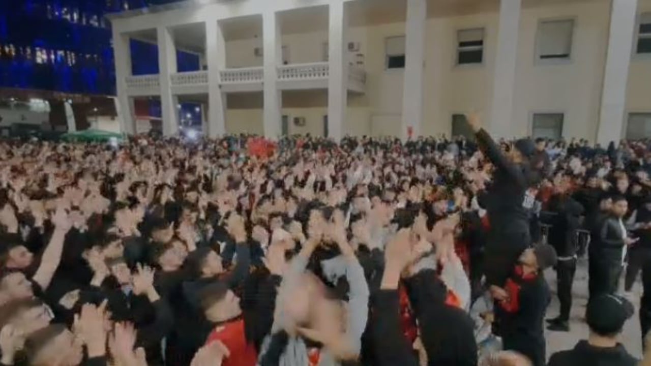 Në sheshin “Italia”, aty ku Tifozët Kuq e Zi janë mbledhur për të ndjekur sfidën me Serbinë, shpërtheu festa në mënyrë fantastike.
