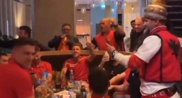 Edhe me “Skënderbeun” midis tyre, dëgjohet kënga e Adem Jasharit, “Mora Fjalë”. Taulant Seferi duket në rolin e ‘solistit’, të cilin kuqezinjtë e tjerë e shoqërojnë. Atmosferë e zjarrtë te kuqezinjtë, nga fusha e futbollit te muzika.