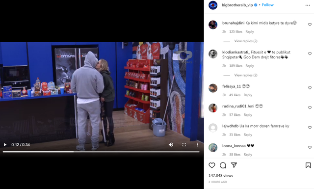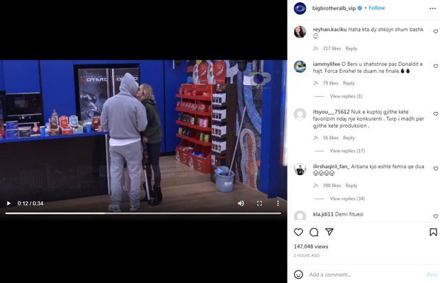 Ky moment është publikuar në faqen zyrtare të “Big Brother VIP” në “Instagram” dhe ndjekësit nuk i kanë kursyer komentet.