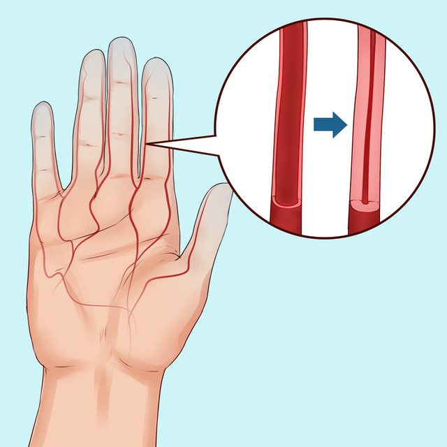Kjo bën që duart, gishtat e këmbëve dhe ndonjëherë pjesët e tjera të trupit të zbardhen ose mavijosen dhe t’i ndjeni si të mpira. Pastaj ato bëhen të kuqe, kur fluksi i gjakut kthehet.